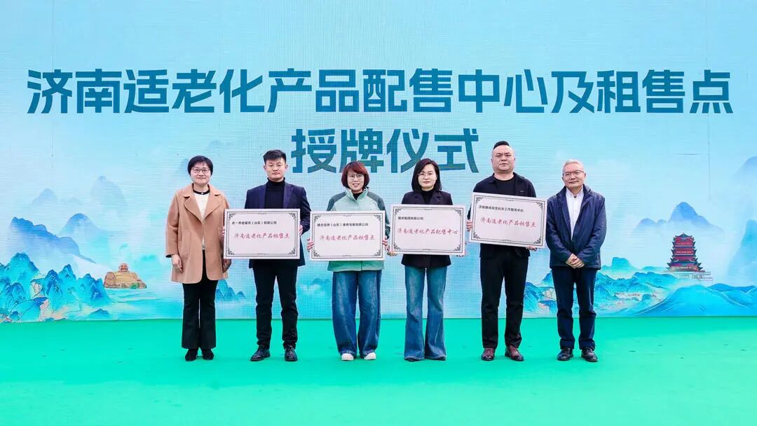 针对“居家养老”这一主流需求,现场举行了济南适老化产品配售中心及租售点授牌仪式。唐派集团有限公司、名一养老服务(山东)有限公司、椿合慧养(山东)康养发展有限公司、济南康成宜佳社会工作服务中心4家单位获授牌。今后,济南的老年人在家门口即可购买、租赁防滑地垫、助浴椅等适老化产品,有效解决养老服务供需对接“最后一公里”问题,助力实现从“养老”到“享老”的转变。