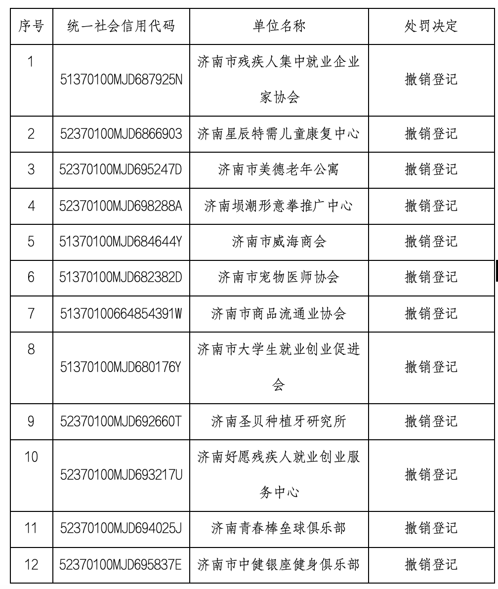 经查,下列社会组织连续三年未按规定报送年度工作报告,违反了《社会团体登记管理条例》第二十八条和《民办非企业单位登记管理暂行条例》第二十三条之规定,在《行政处罚事先(听证)告知书》公告送达期限内未向本机关提出陈述、申辩意见。依据《社会团体登记管理条例》第三十条第一款第(三)项和《民办非企业单位登记管理暂行条例》第二十五条第一款第(三)项以及《山东省民政行政处罚裁量基准(2024 年版)》之规定,本机关对下列社会组织依法做出撤销登记的行政处罚。