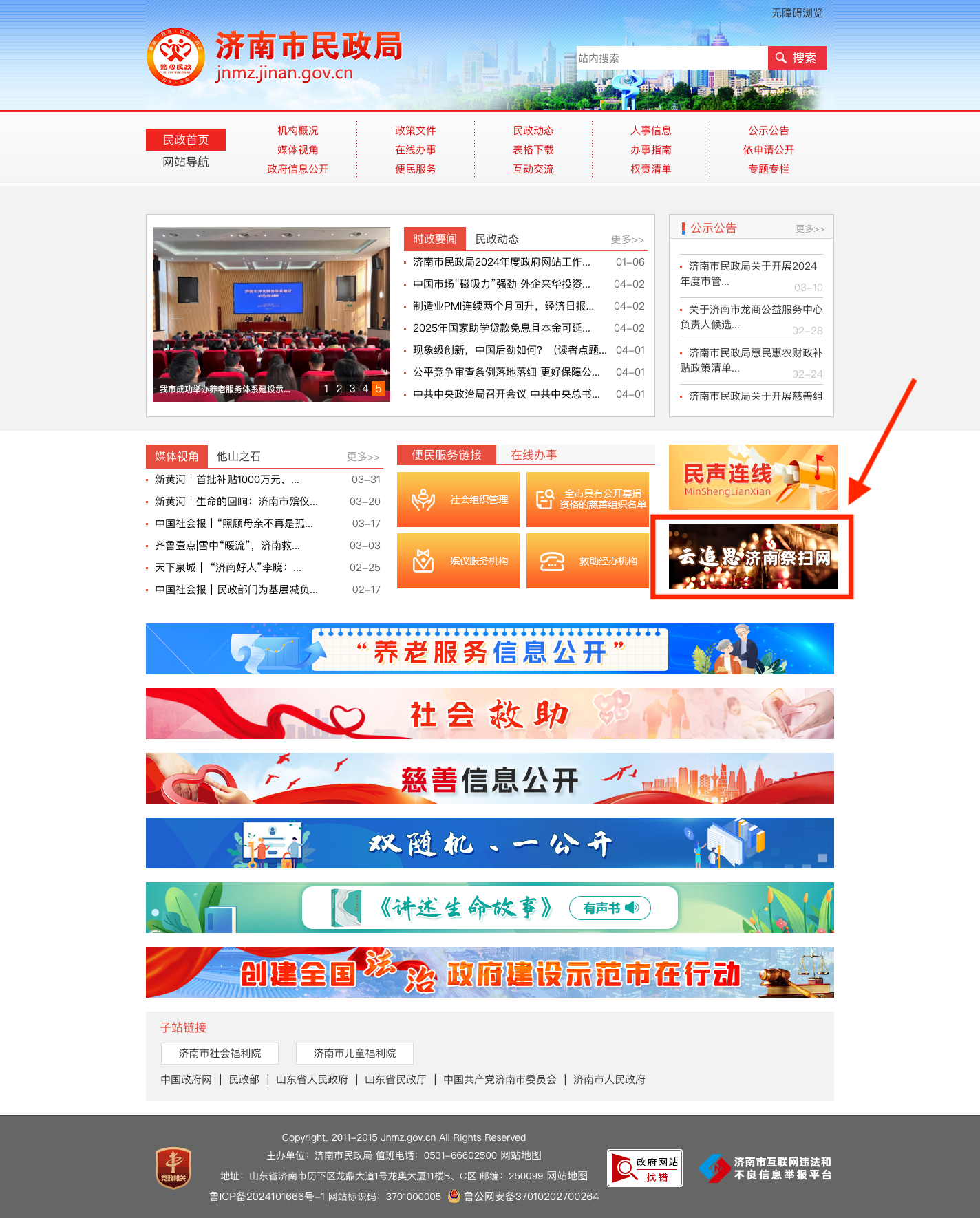 答:登录济南市民政局官网,在首页点击“云追思济南祭扫网”进行网上祭扫。
