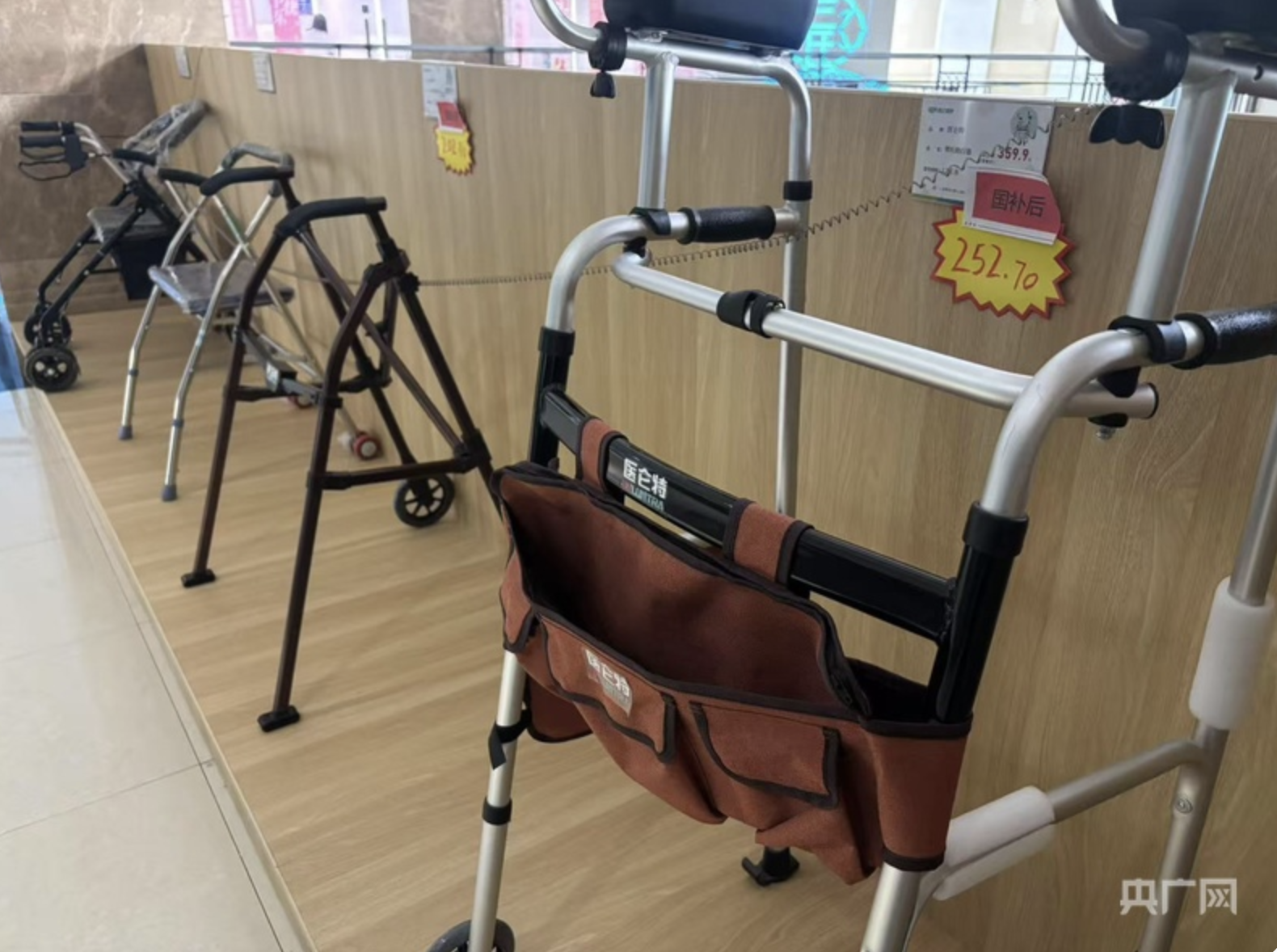 记者看到,在该产品租售中心内,助行器、防滑浴凳、智能报警器等适老化产品整齐陈列,老人们可以直观选择、现场试用。货架上的纸尿裤、酒精棉片等消耗品种类也十分丰富,能够满足老年群体的日常需求。值得注意的是,所有上架产品均经过严格筛选,需提供生产许可证、质量检测报告等资质文件,且优先选择医用级康养及适老用品品牌,从源头保障产品安全可靠。