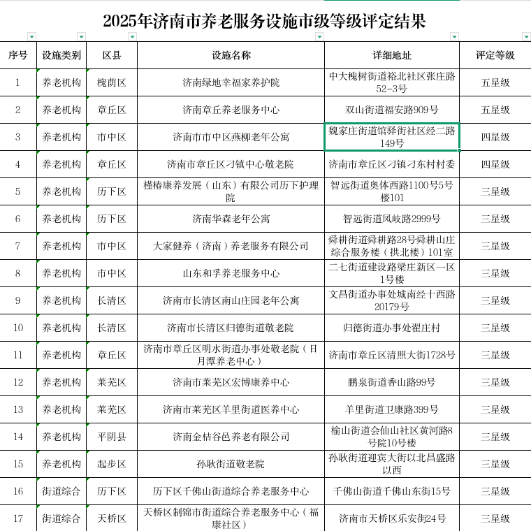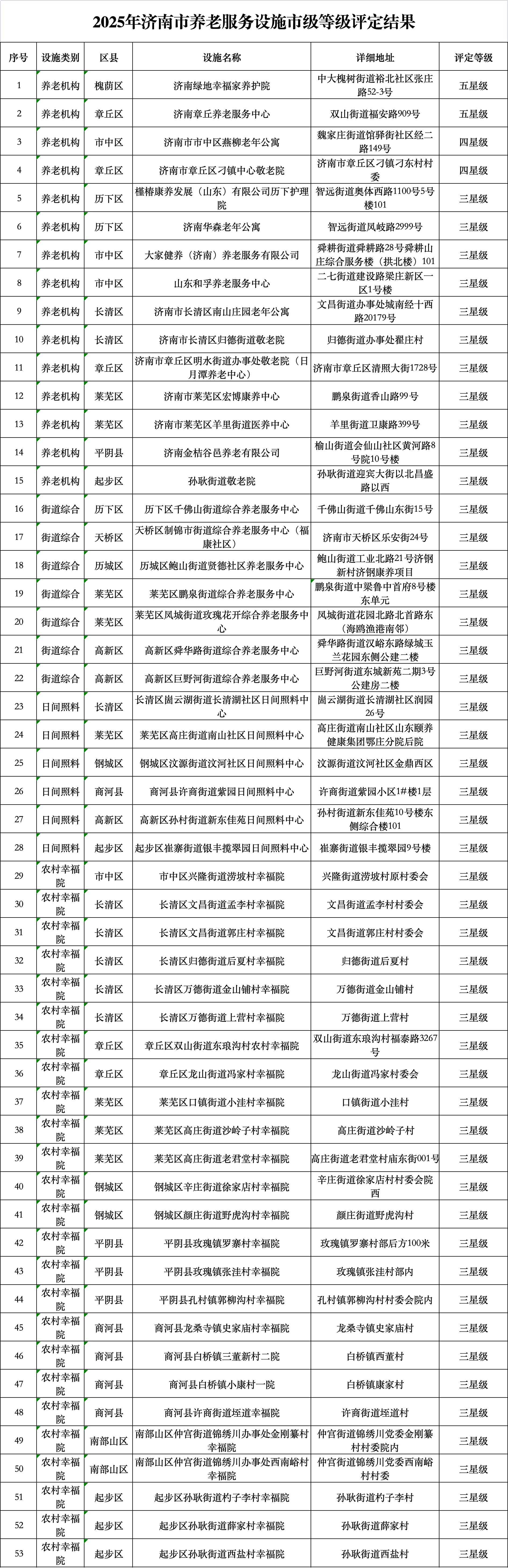 关于2025年济南市养老服务设施市级等级评定结果的公示