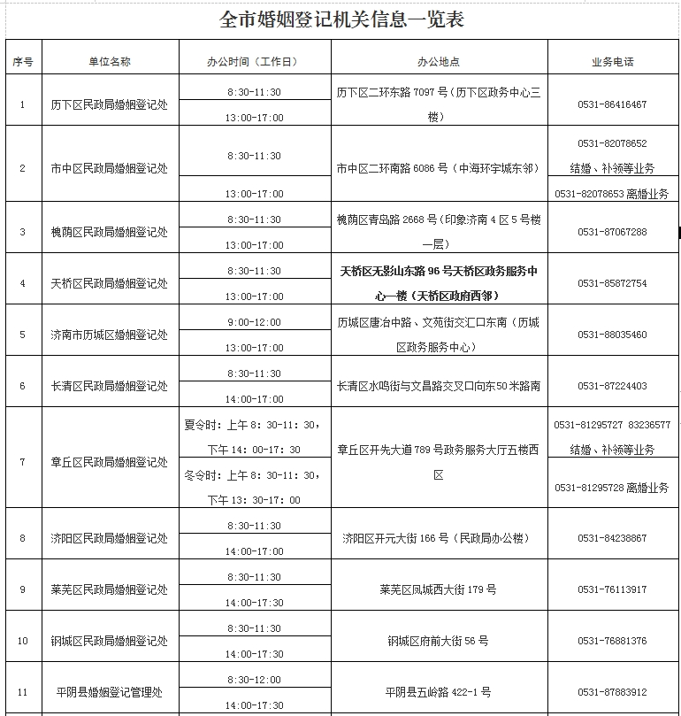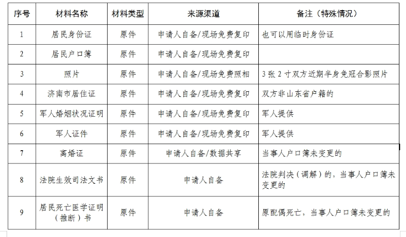 1.双方中有一方为山东省常住户口的,可以到济南市的任一县级民政部门婚姻登记机关或市内经常居住地的县级民政部门婚姻登记机关办理结婚登记;双方当事人均非山东省常住户口、但一方经常居住地在济南市的,可以到济南市内的经常居住地县级民政部门婚姻登记机关办理结婚登记。